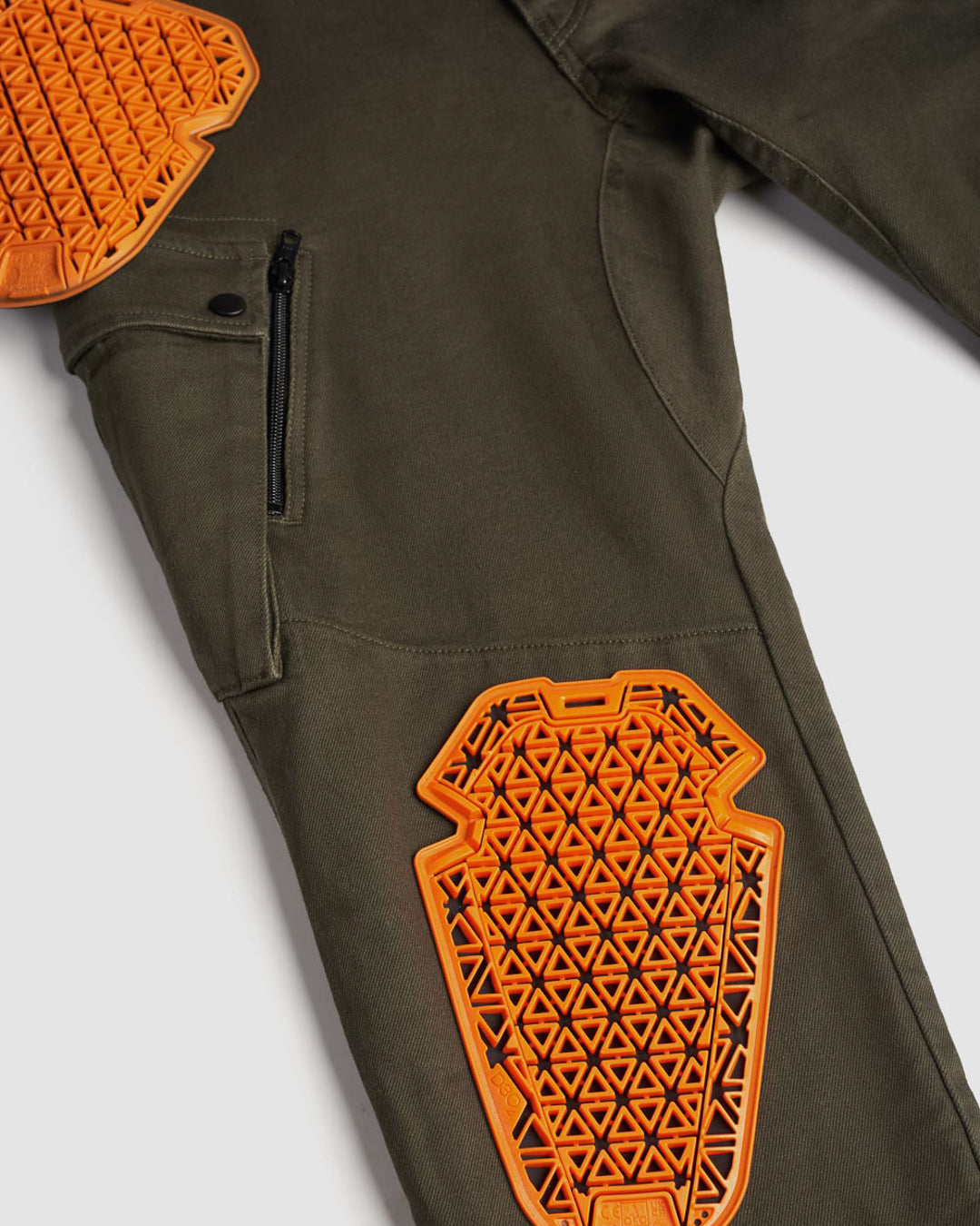Form meets function with our olive colored MARK OLIVE AAA motorcycle cargo pants-- new and improved with AAA CE rating and Balistex® lining. The cargo-fit pants are made with military green 12.5oz Cordura® super-stretch denim, offering both comfort and durability. These jeans by Pando are notorious for their toughness, functionality, and precision craftsmanship.