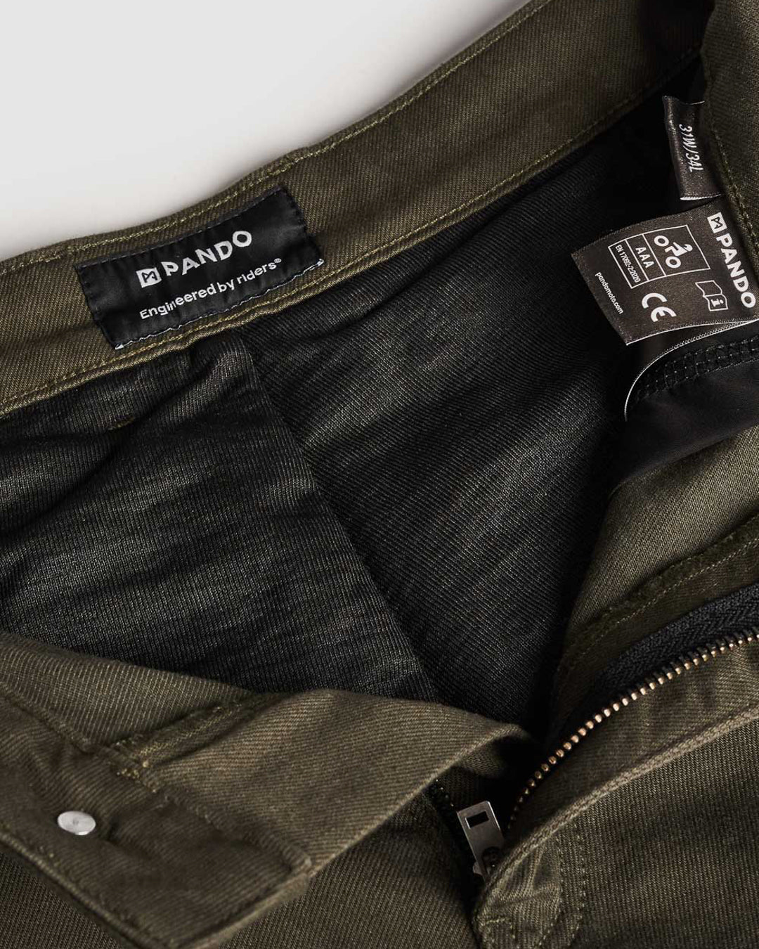 Form meets function with our olive colored MARK OLIVE AAA motorcycle cargo pants-- new and improved with AAA CE rating and Balistex® lining. The cargo-fit pants are made with military green 12.5oz Cordura® super-stretch denim, offering both comfort and durability. These jeans by Pando are notorious for their toughness, functionality, and precision craftsmanship.