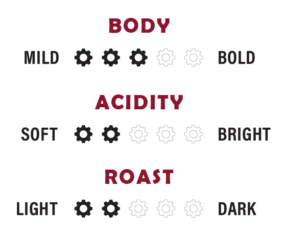 A galvanizing blend sourced from northwestern Guatemala. Balanced notes of fruity papaya and citric orange acidity finish with a sleek, carmelly chocolate body.