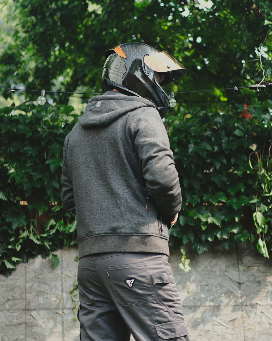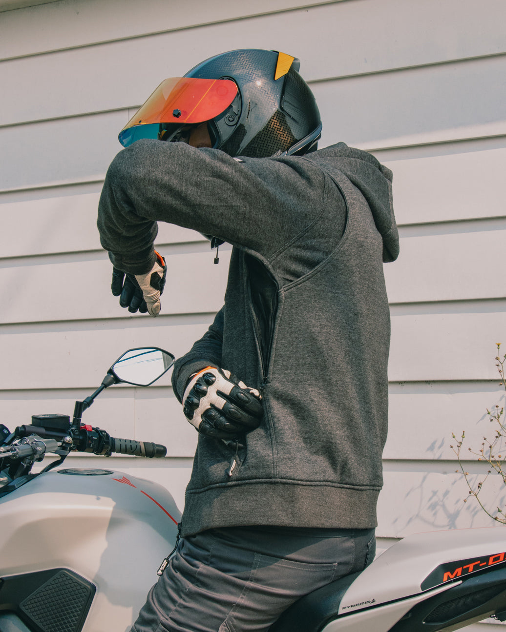 Designed for cozy rides and completely incognito protection, this Kevlar-lined fleece hoodie combines comfort, style, and safety, making it essential for transitional seasons and chilly adventures.