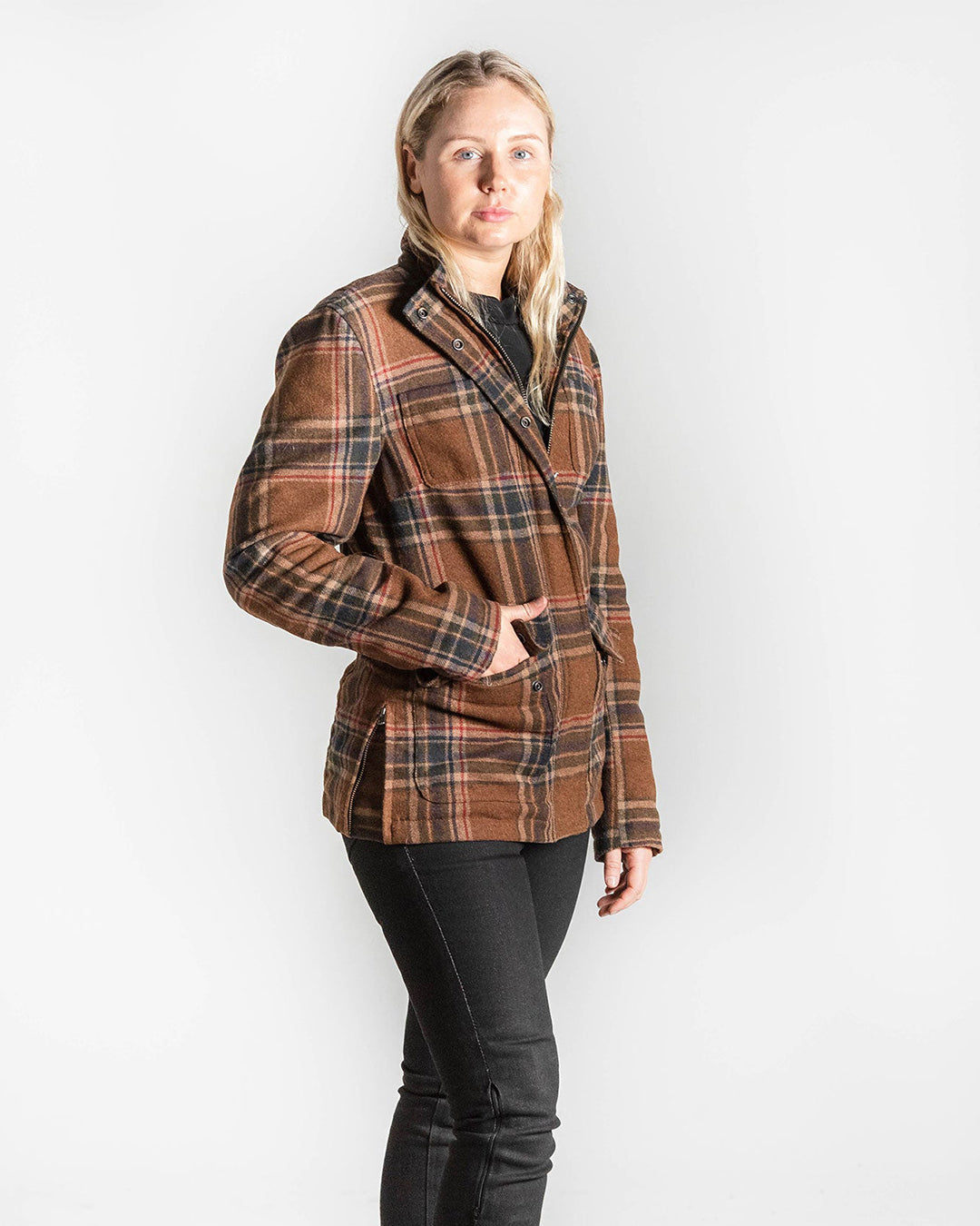 Women's lightweight but warm 100% wool shirt/jacket with abrasion-resistant Kevlar® lining, equipped with pockets for armor